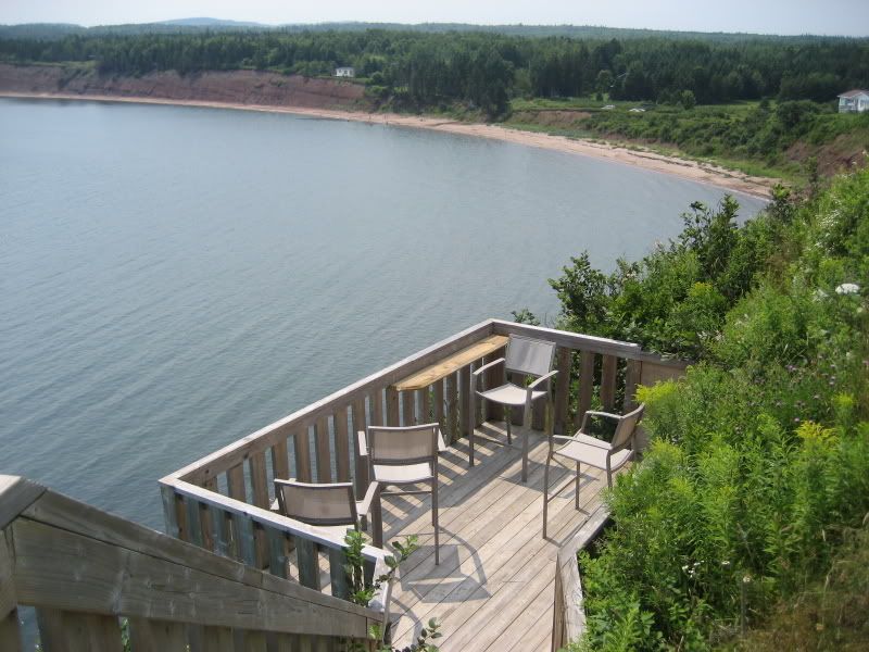 Good thread idea! My favorite place is my family's home in Nova Scotia. The backyard is a large green lawn that stretches out to the cliff side where we have 6 cabins with a fantastic ocean view that my parents rent out in the summer/fall. A year ago my stepfather and I built a staircase that leads to a deck, it is now my favorite place to sit and read and just put things into perspective whenever I visit.