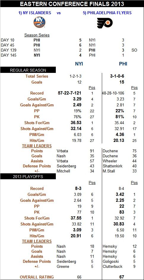 In recent years the Islanders have been a thorn in the side of the Flyers. Interestingly the Flyers have turned the table and have owned the Islanders this season save for the last meeting. Even more interesting is the pending battle between the goaltenders Lundy and Miller who are among the leagues best and have both worn Islanders jerseys this season. Miller has been a proven playoff goalie in the CPHL. Can Nash continue his quest for the cup or will Miller shut him down? In these playoffs the Flyers are the highest scoring team while the Islanders are the highest shooting team.