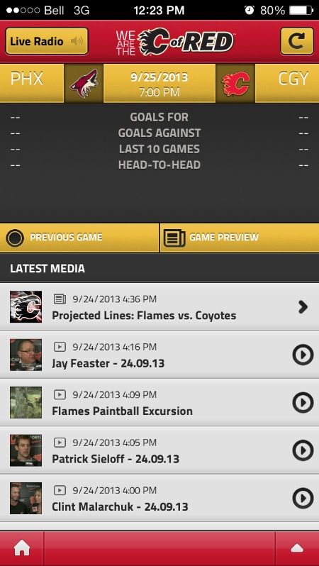 The Flames have finally released their updated App. So much better. The video actually work again and you can stream live video and live radio of games.