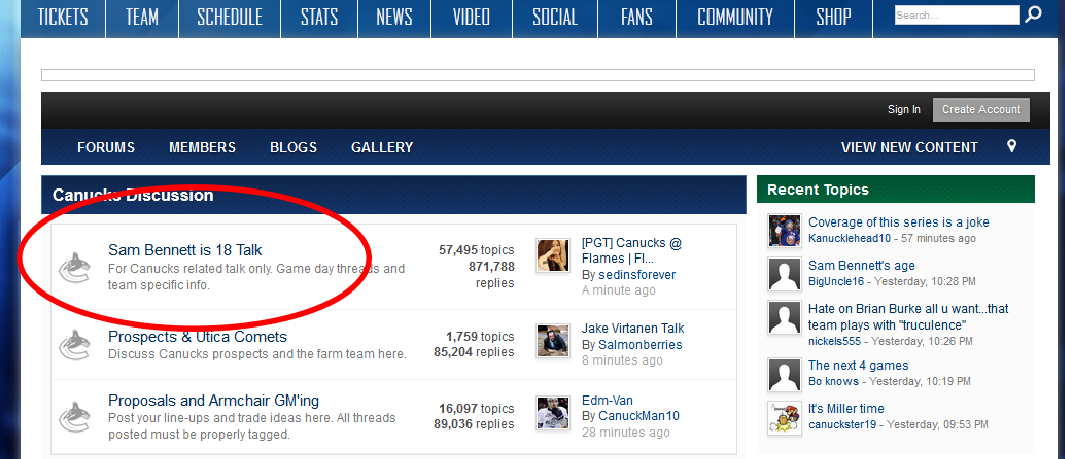 Anything mentioned about Sam Bennett being 18, or any sentence with Michael Ferland in it will earn a rage thread over at CDC. So much so that the Forums admins went as far as changing the title of their "Canucks Talk" section as seen above. I'm sure there's plenty of other Forums with loads of Butthurt as well.