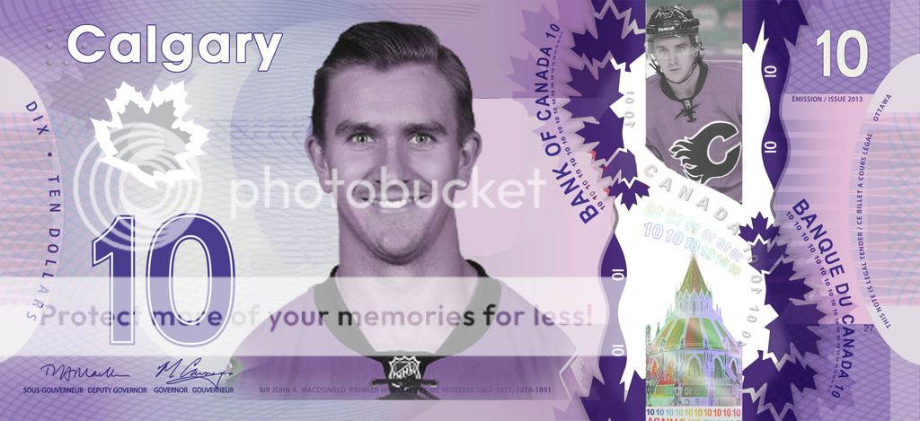 I'm wondering if any of you photoshop experts would be able to help me out. I am a substitute teacher and have been working in a classroom for the last two months with a student who has behavioural challenges. He really enjoys working with money, and he is a huge Flames fan! He often struggles to get work done, but if we can relate his work to hockey in any way, shape or form, he then can focus and get his work done. One of the strategies that his classroom teacher uses with the students in her class is they can earn 'money' when they show acts of respect towards others. Once the class earns so much money, they choose a class reward (a movie, cooking, etc.).
