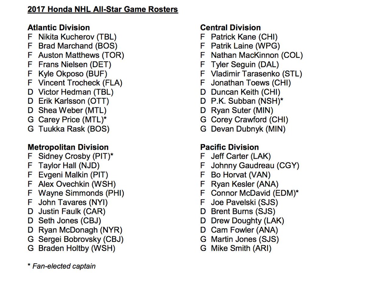 After the thing with John Scott, I don't know people watch this thing, this is just a money grab. The fans really don't decide the players.