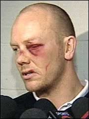 An anonymous Bruins player relayed the rest of the story to the Globe. Sundin gracefully apologized to the guests, stepped down from the podium and made his way to THE Brian Holzinger’s table. He calmly sat down beside Brian and asked him to keep his comments to himself and that his was neither the time nor the place. As Sundin turned to leave the table, Holzinger swung around in a fit of rage and hit him just above the left eye with a lobster tail. From what we were told Sundin was helped up off the ground and taken immediately to the hospital for observation. THE Brian Holzinger was sent in a cab back to the hotel he lives in.