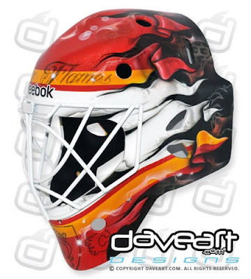Alright CP, let's rumble! After hours of meticulous research, gruelling deliberation and unprecedented physical punishment, (hey, my eyes didn't escape the sacrifice of seeing some truly horrific designs) I am here to present you 15 of the great masks in Calgary Flames history. Will Trefilov triumph over Tabaracci? Can Kidd or Karlsson crush Kiprusoff? Skills, work ethic and clutchness? Irrelevant. This is the great equalizer of all Flames goaltenders across time.