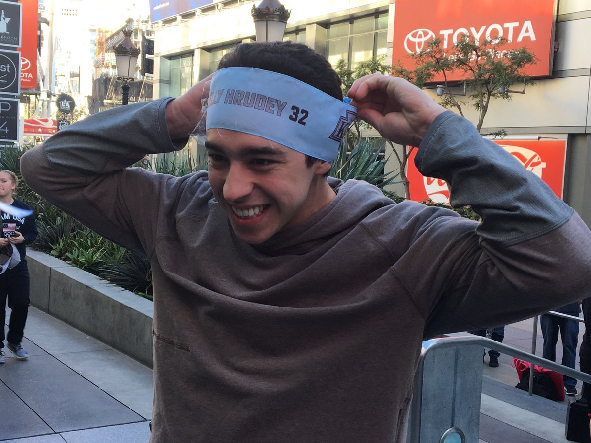 I went to the Flames game in LA when the Kings honoured him and they gave away replica blue headbands. I still have mine in storage, but here's a pic of Johnny rocking one.