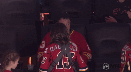 Yup! you saw that right. Gaudreau goes directly to the fan with a Yankees hat and a Canuck jersey after the OT goal. looooosseerrrr