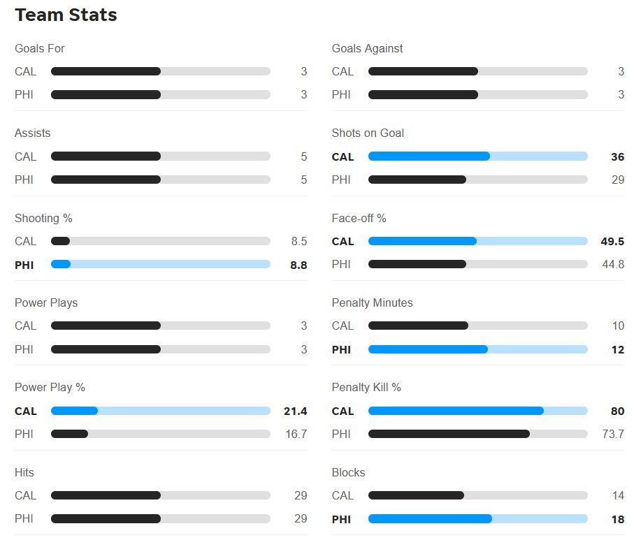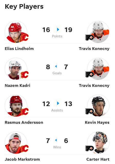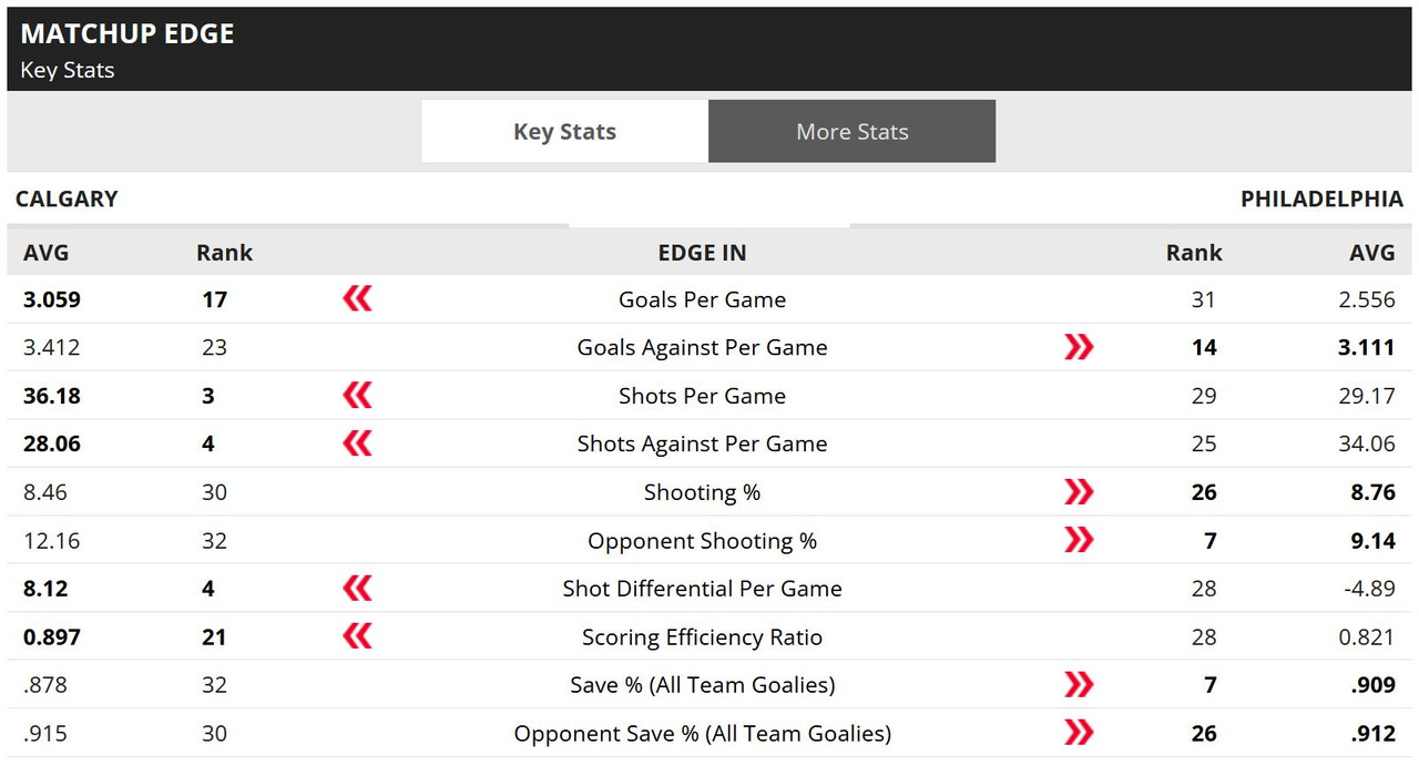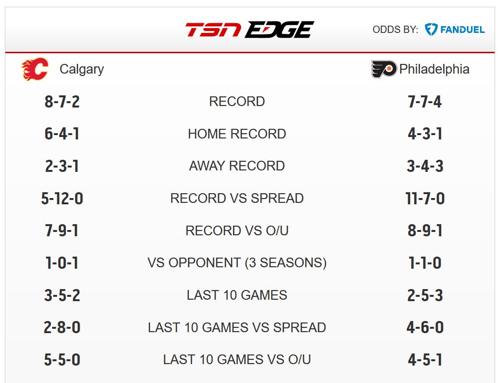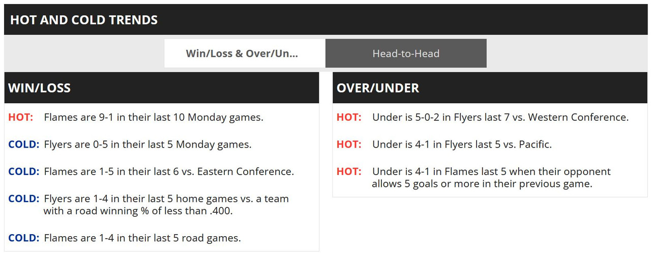 LONG BATTLES: The Flames and Flyers have gone to overtime or a shootout five times in their last eight meetings. Four of those games ended in overtime, with the Flames winning all four and Philadelphia winning the lone shootout the clubs have played over that span.