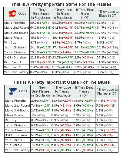They absolutely have to win this, in regulation. Hopefully Binnington remains in net and Blues fans keep booing Kadri, those tools don't realize that Naz feeds from attention. GO FLAMES GO!!!!