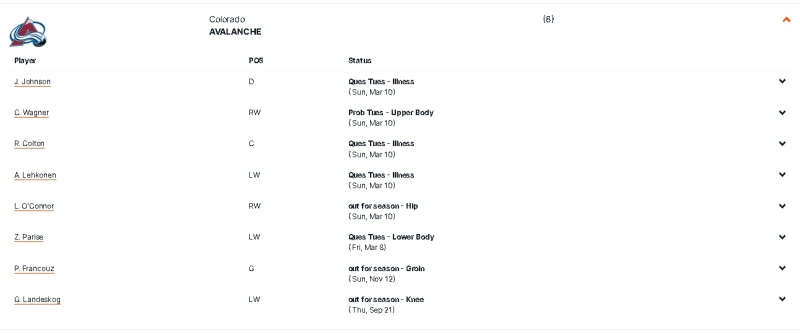 This is a rough 3 game stretch. Back to back vs Carolina and Florida, than fly home across the country to play an Avalanche team that last played on Friday. Even a loaded up team might get clobbered in this one.