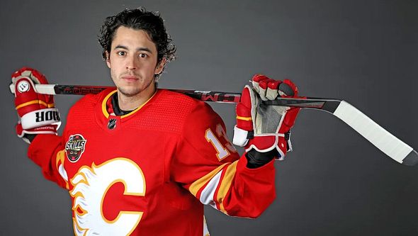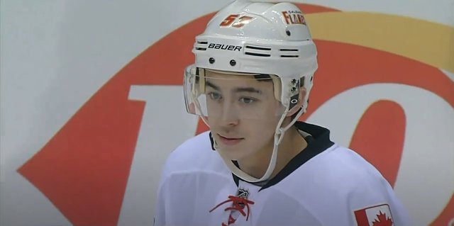 Gaudreau during warm up just prior to puck drop in his first ever NHL game.