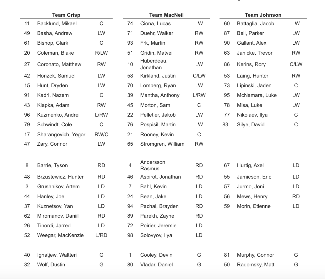 Crisp: Based on Huska's interview seems like Backlund, Coleman, Zary will be a group. Kadri, Sharangovich, Kuzmenko another. Honzek-Schwindt-Coronato could be the AHL top line.