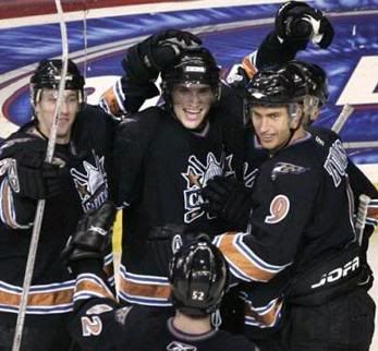 (Ryan Whitney celebrates his 4th goal of the season and 3rd game winner)