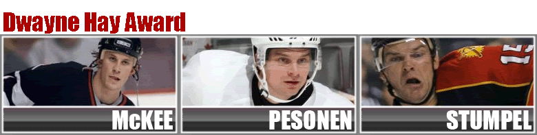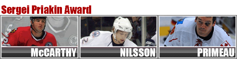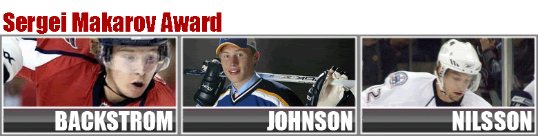 Thrashers rookie sensation Robert Nilsson who lead all rookies in scoring is basking in the limelight with other rookie standouts Erik Johnson and Nicklas Backstrom. With all the fame and notoriety that the Makarov Award attracts Nilsson was still able to slide under the radar and find his way as one of the 3 most under-rated players in the CPHL for the Priakin Award.