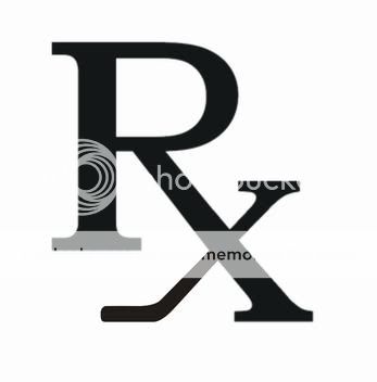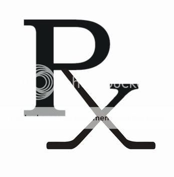 Basically we a prescription "RX" logo you know, where the x is part of the slanty bit on the R, but with some hockey sticks incorproated. Perhaps with the slanty bit of the R and the other side of the x as hockey sticks.