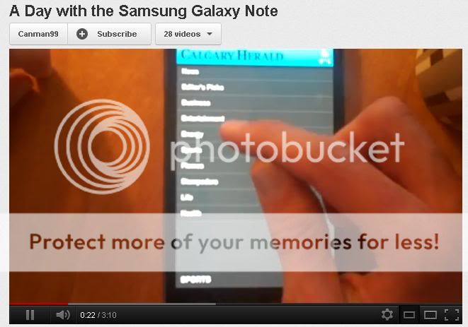 http://www.youtube.com/watch?v=wCNLO5y3cRE (A Day with the Samsung Galaxy Note- featuring the penguins at the Calgary Zoo, me making an omelette and my awful hockey skills!)
