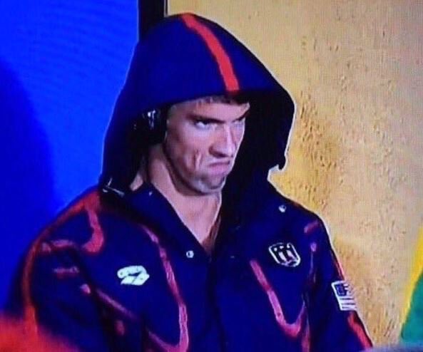 And if you watched the swimming last night, you know we have our meme of the Games, and something that will likely be in the running with Crying Jordan for most overused meme: Phelps game face