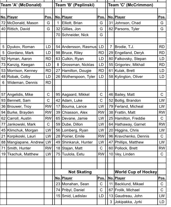 Also, I love that Kylington is on a team with Brodie and Gillies is with Elliot. Hopefully the vets can help the youth.
