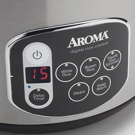 - Easy-to-use digital controls for white rice, brown rice, sauté-then-simmer, steam and keep-warm