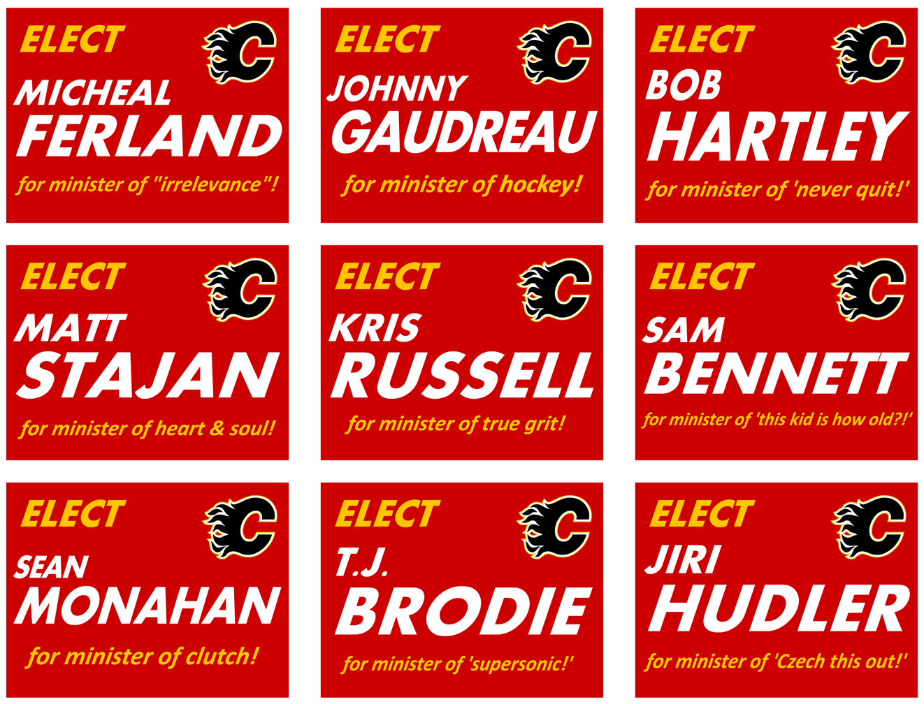 Does the election allow for write-ins? Can we write them in anyway? No seriously, I'd rather have an absent Calgary Flame in public office than derpy McTalking-head bozo from the PCs or wildrose who will inevitably win my riding.