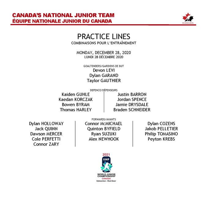Also lines from today's Canada practice