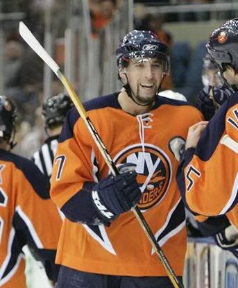 Kristian Huselius of the New York Islanders celebrates with his