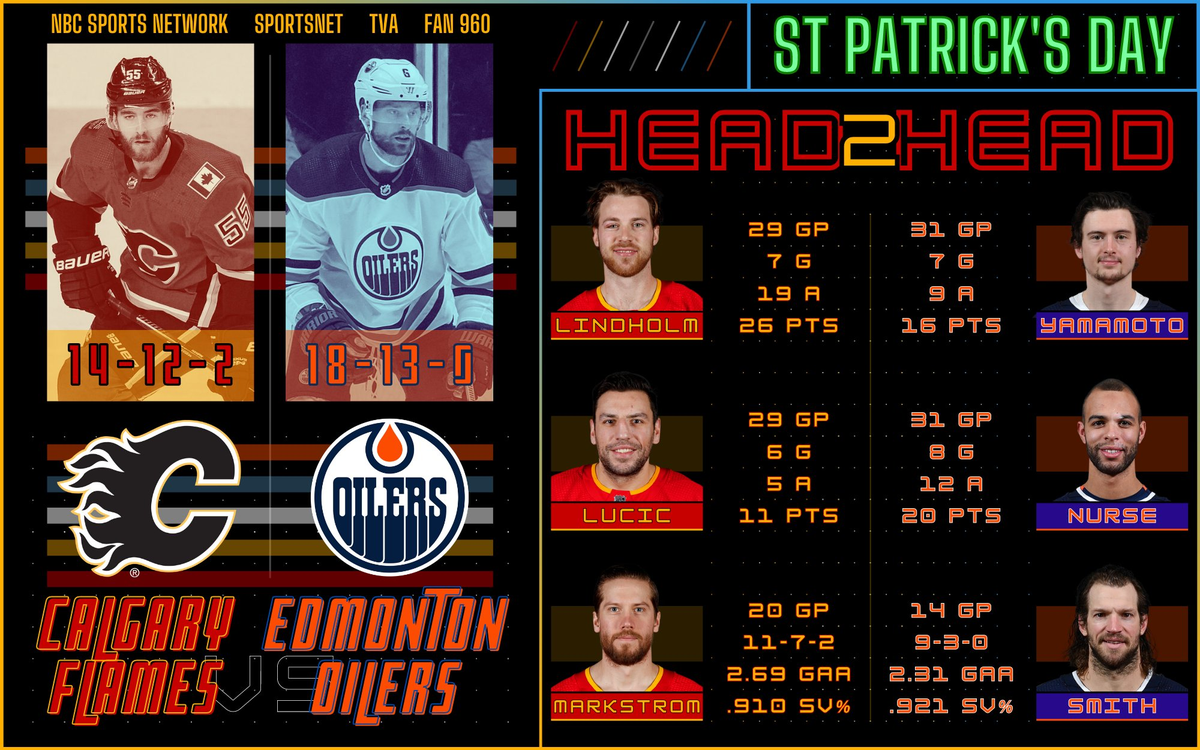 EDM (18-13-0) @ CGY (14-12-2). 8:00 pm on SN (national), NBCSN, and TVA.