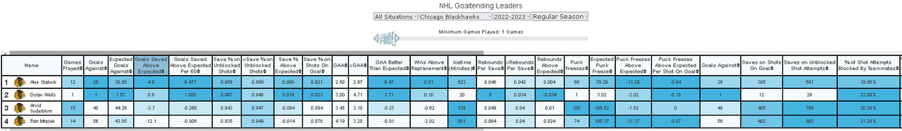 I watched Chicago play against Arizona the other night ... Stalock was out of his mind. He's so much fun to watch, a true throwback. Reminds me a little of Wolf with how athletic and dynamic he is in the crease.
