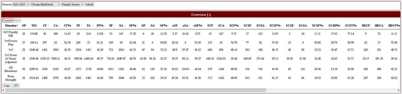 2-8-0 in the last 10, the only other win was against the also tanking BJs. Very much an AHL quality squad, the only thing that remains a threat, from my guys, is the above average play of the Goaltenders. Mrazek and Stalock, have been standing on their heads, while, the Blackhawks' wretched D-men allow high danger chance after high danger chance.