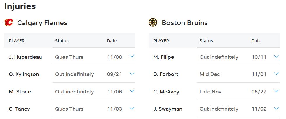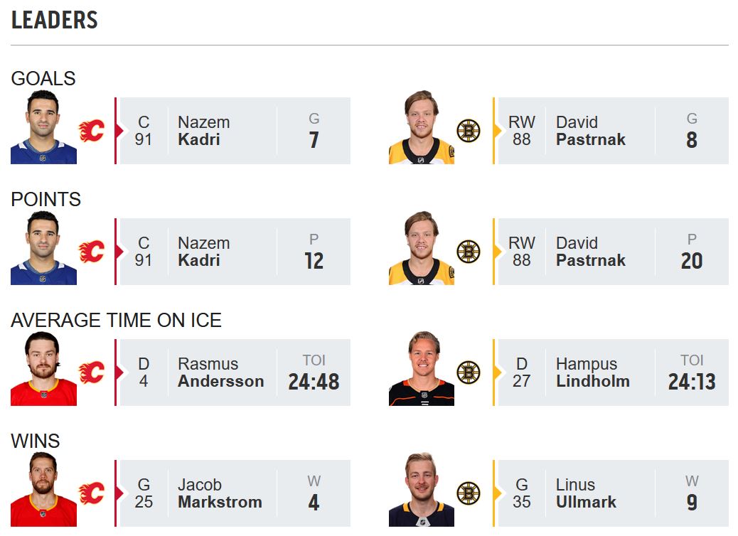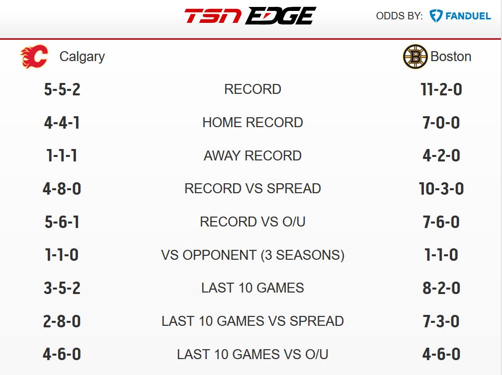 BOTTOM LINE: The Calgary Flames, on a six-game losing streak, play the Boston Bruins.