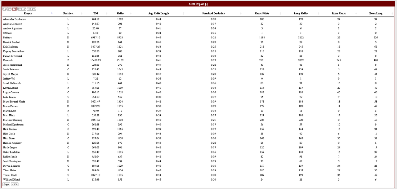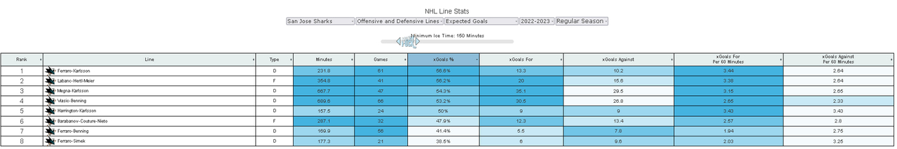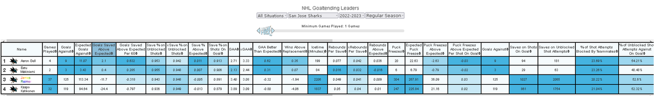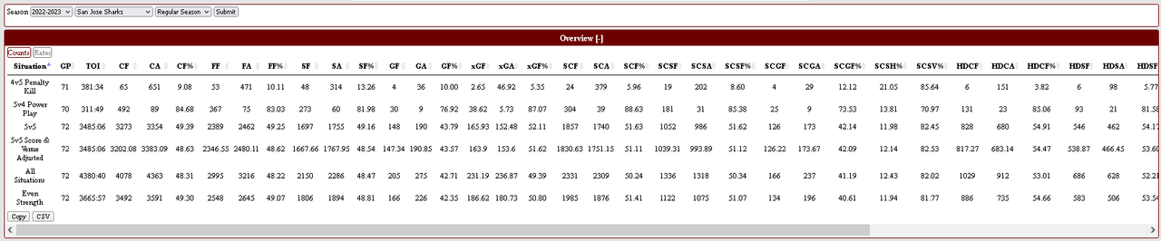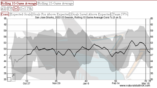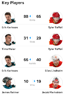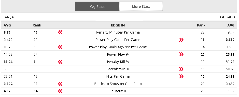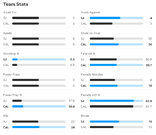 Sharks: 1-6-3, averaging 2.3 goals, 4.1 assists, 4.7 penalties and 10.8 penalty minutes while giving up 4.8 goals per game.