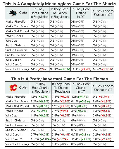 Okay, I know I said it before the Vegas game, but this game is ACTUALLY a must-win... Go Flames! Just win, please!