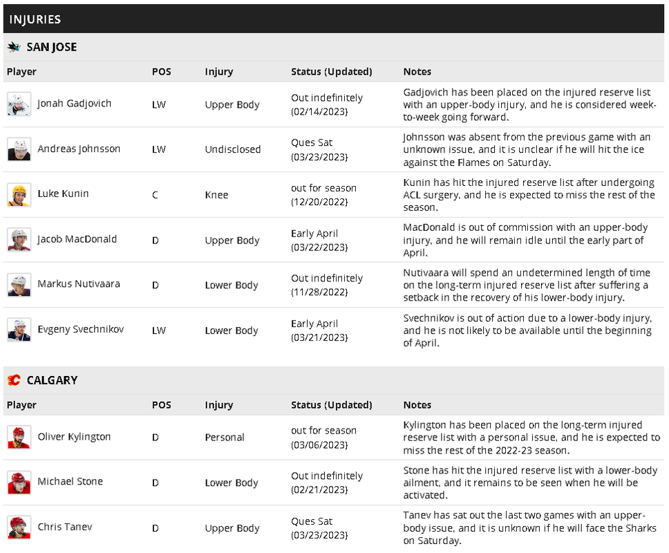 LAST 10 GAMES: Flames: 5-3-2, averaging 3.5 goals, 5.9 assists, 3.3 penalties and 7.7 penalty minutes while giving up 3.1 goals per game.