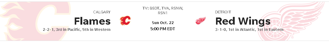 Calgary Flames at Detroit Red Wings 3:00pm TV:SNW/1, BSDET, TVA, RSNW/1 - RADIO SN960