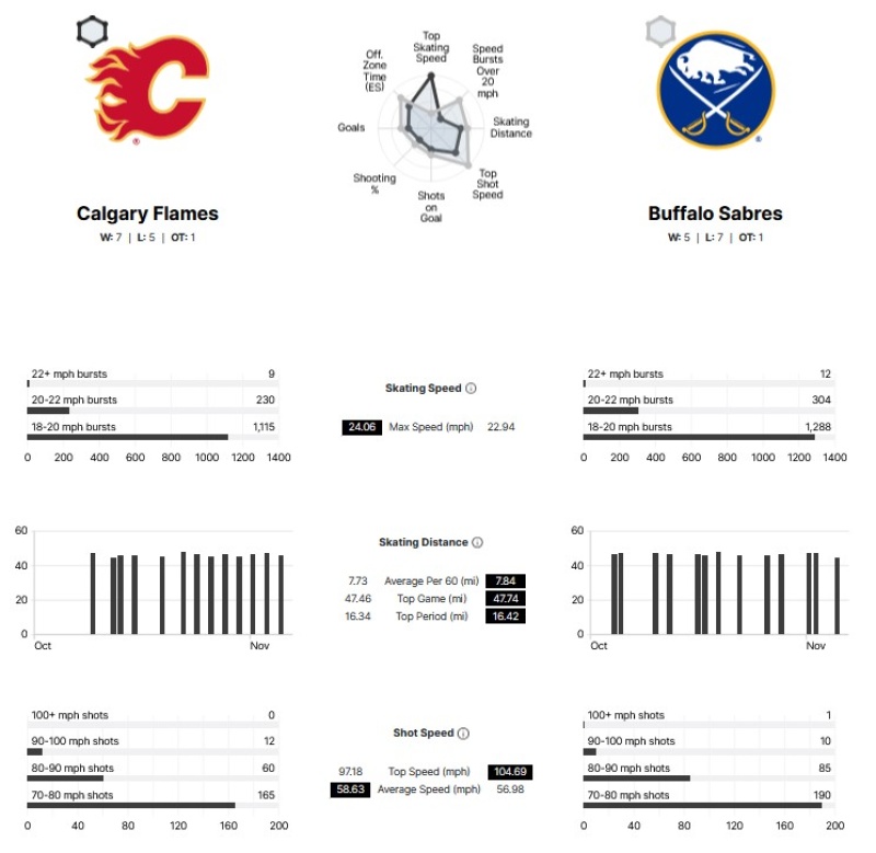 The Calgary Flames are blazing a trail in the NHL this season, leading the league in max skating speed with an impressive 24.06 mph. This speed edge has come primarily from their forwards, who have consistently maintained high speeds