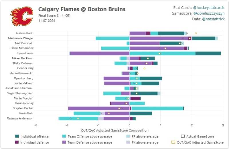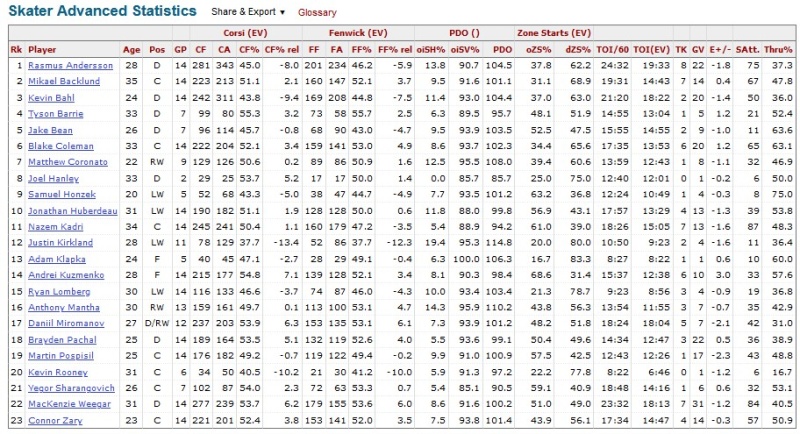 The post above mentioning Sharangovich, Huberdeau, Kuzmenko, Kadri is correct. Those guys are the keys to the Flames success. They need to generate offence.