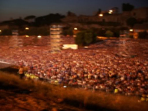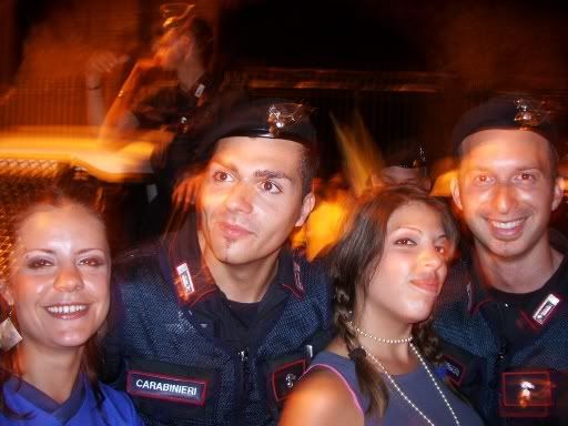 Some pics from last night... The first few are from circus maximus, then there are a couple from the pilgrimage to the colosseum, then there are a couple from piazza venezia. I'm going to throw in a pic of a couple of friends posing with the carabineiri. Just to say that the party was intense, but not out of control.