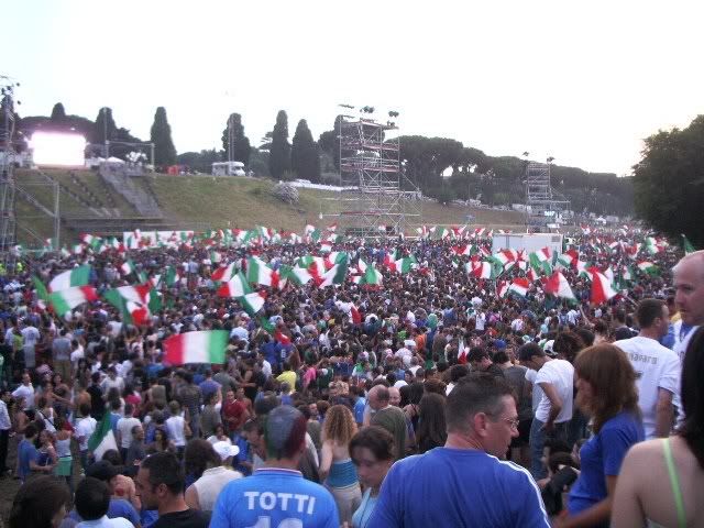 Rome went Red Mile last night. I'm sure there were problems here and there, but I didn't see anything out of control. I saw one random fire in the middle of piazza venezia, one fistfight, two knocked over garbage cans, and one hot dog vendor truck (quite dangerously) make a dash through a thick crowd and get pummelled by ****ed off people.