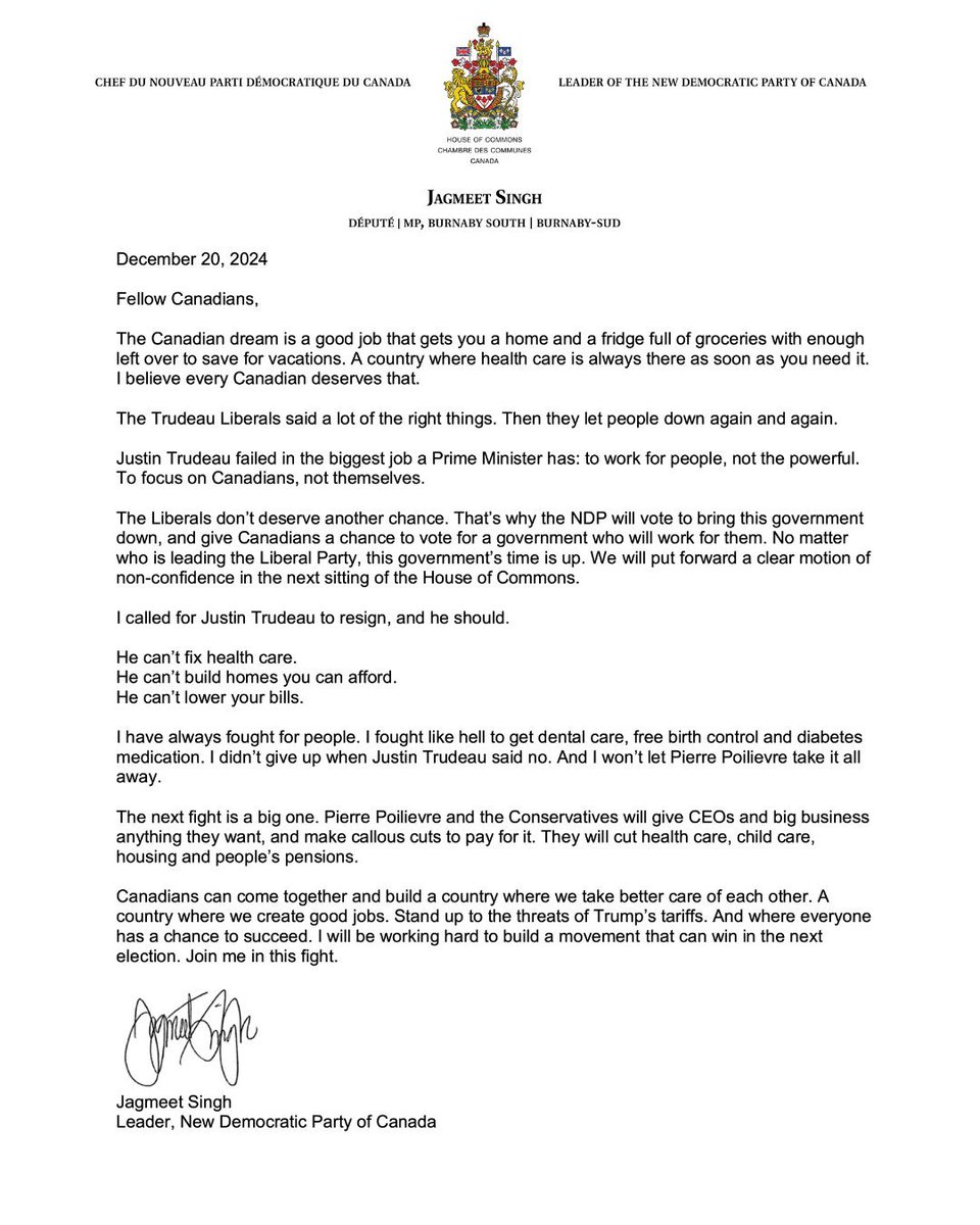 Singh is just saying what he needs to say. But he's delusional if he actually thinks a successful non-confidence vote will advance the NDP agenda in any ways.