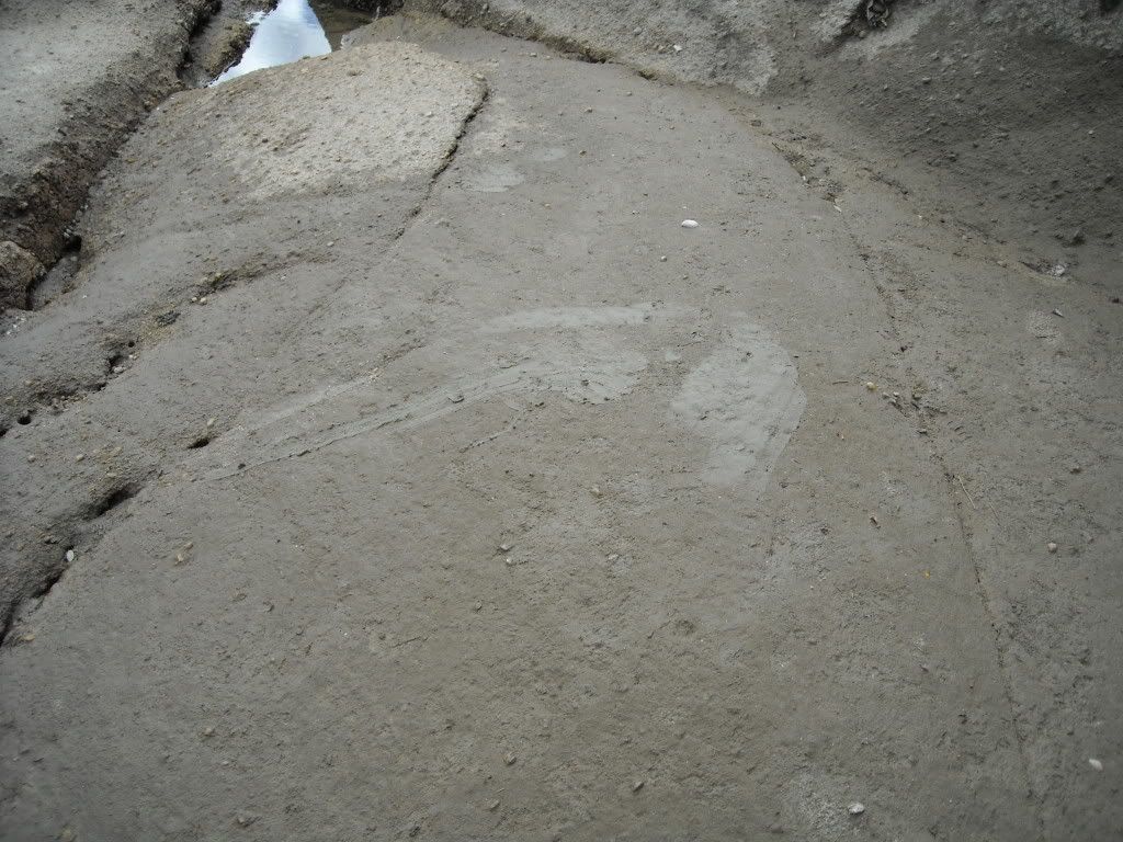 With my shoes in one hand and my feet covered in a thin layer of saturated silt a medium sized wall of rock acted as a barrier to our destination. I climbed over first and noted the flat pancake-esk rock on the other side. I further noted the precarious 32 ° angle of the rock sloping away from the medium sized barrier. There was no choice we we had to cross this rock wall. At this time I turned and gave this pertinent information to Surfergirl and offered a hand over the impediment. The offer was refused, the warning unheeded and I carried on without much thought.
