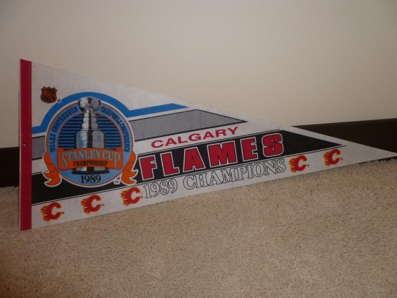 1989 Stanley Cup Pennant, measures 30 inches in length. Very Good condition with pin holes.