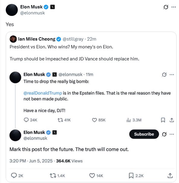 Gotta cheer for Elon here, he might have the ammo to take down the whole GOP. If Elon goes down, big meh on that other than the lolz.