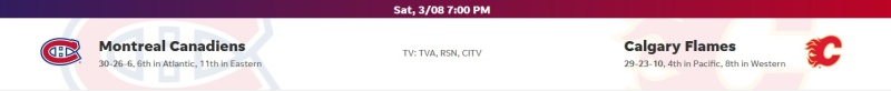Flames Montreal Canadiens at Calgary Flames 5:00pm TV: SNW, SNE, TVA, CityTV - RADIO SN960