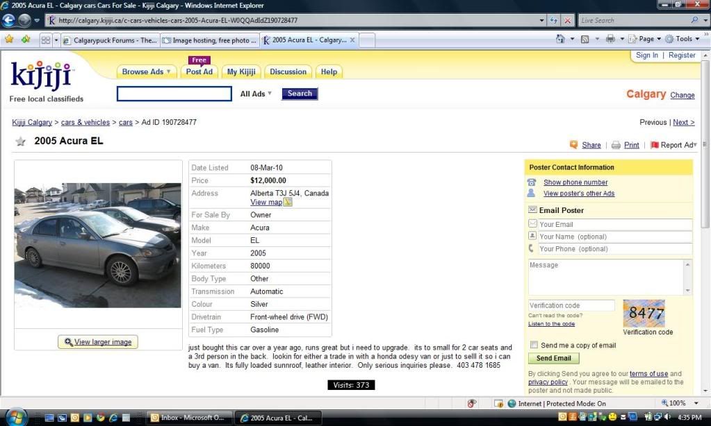 2005 Acura EL with 80,000 kms...loaded with leather. Start munching, guy. Price on here is $12K before negotiations. That means if you're not a complete failure at life you won't be paying one single penny over $11K. Here's a screen capture in case this sells:
