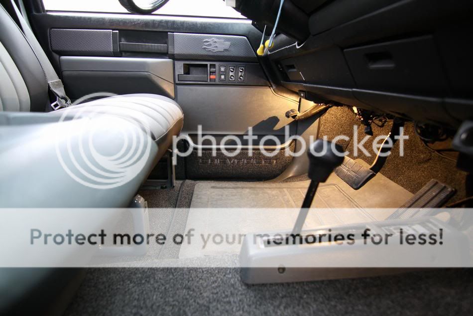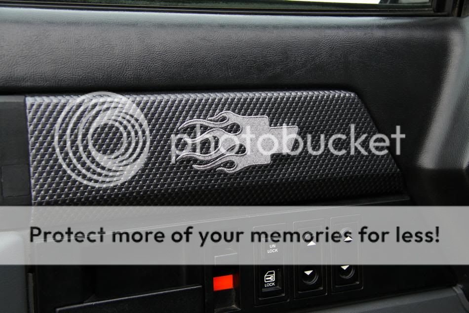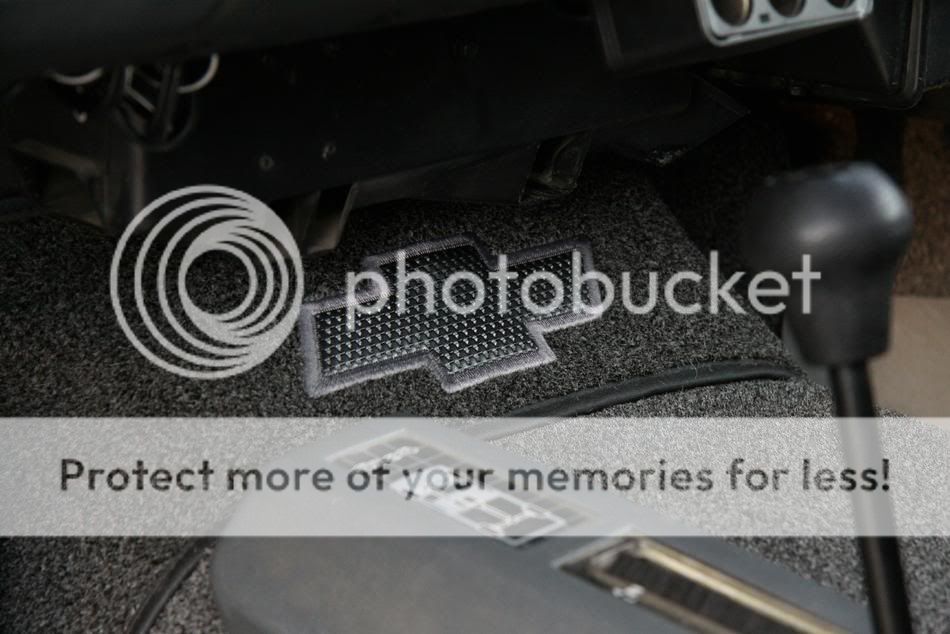 and i'm throwing a chevy bow tie down on the floor on the center 'hump' - sort of in front of the 4-low/4-high/2-high shifter. the material in the center is the same as the above door panel material. i was going to use the same reflective stuff that i used on my seats, but thought this might be a little more durable (being that it's on the floor)...