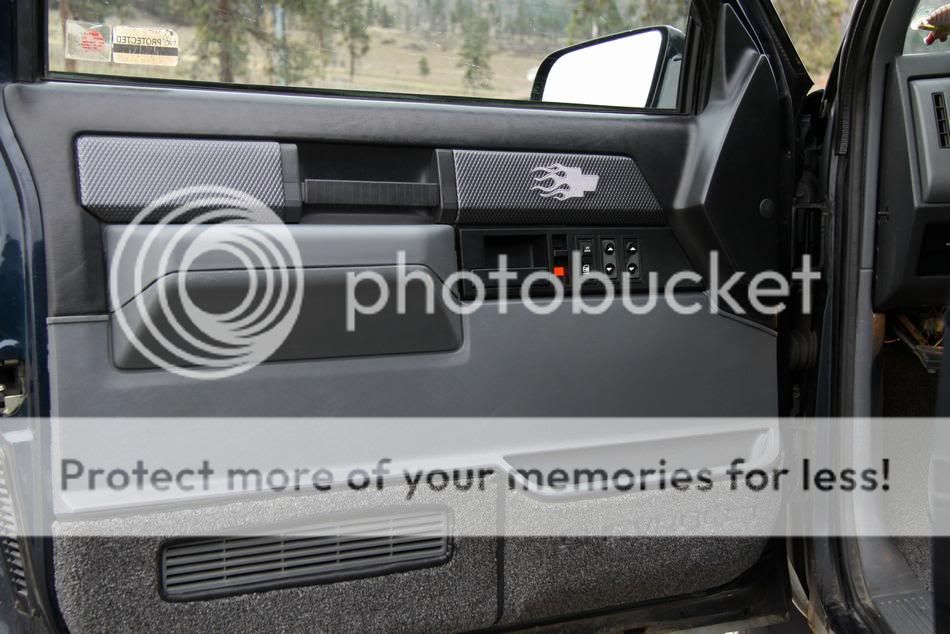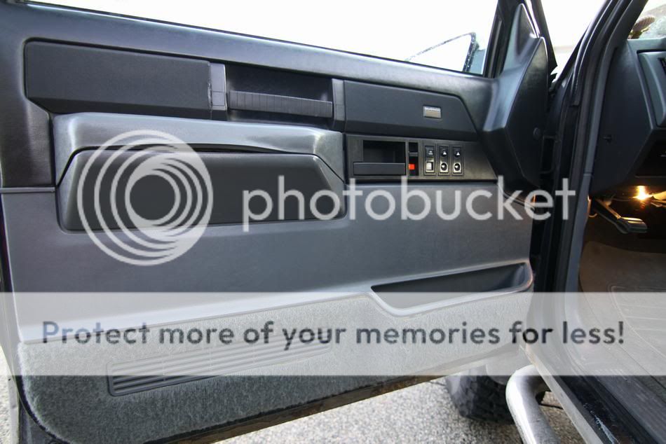 the doors..... replaced the bottom carpet and the material inserts on either side of the pull handle. i also replaced the top part of the arm rest (one thing i've discovered doing this job - it's really tough to find interior parts that are in good shape/new for an '89 truck!!)