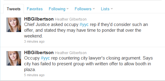 Brilliant quote from HBGilbertson's twitter after she comments on the Occupyer's getting crapped on for eating in court