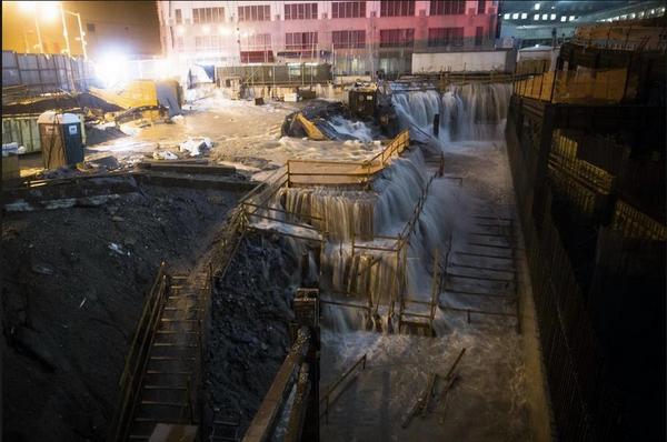 Times Square is in midtown, no real flooding there yet. WTC site is downtown, closer to the water, much more flooding there.
