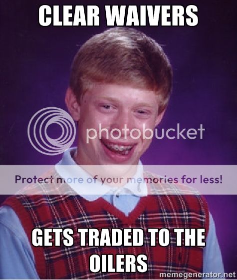 Yeah, but if someone else had put in a claim in, the Oilers wouldn't have him available to them to play now or to trade in the future. So, it would be a pretty stupid move to think: "We think this player will help our team now, but if we put in a waiver claim, there's a slim chance we won't be able to trade him in two and half months. So, we'll wait, hope he clears waivers and then trade away one of our young centres to acquire him."