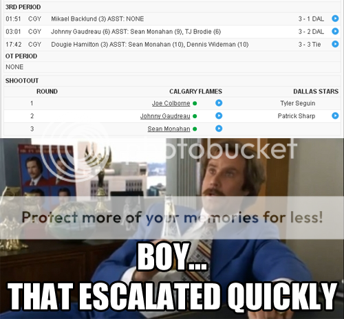 I accurately predicted a Flames win AND no points from Benn or Seguin in the GDT.