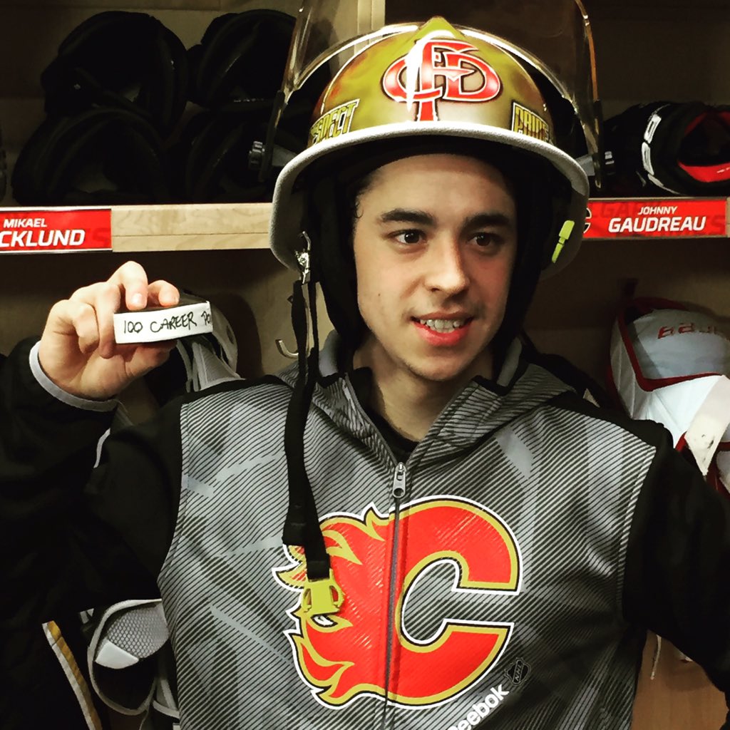 .@johngaudreau03 with the puck from his 100th point!